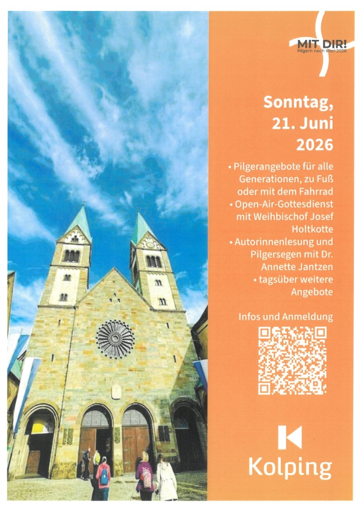 In diesem Jahr steht der Pilgertag unter dem Motto „MIT DIR! Pilgern nach Werl 2026“ und lädt somit jeden und jede ein, mitzugehen auf einem der unterschiedlichen angebotenen Pilgerwege.